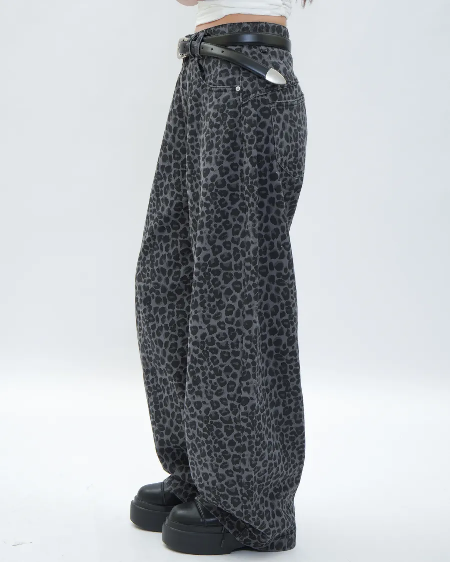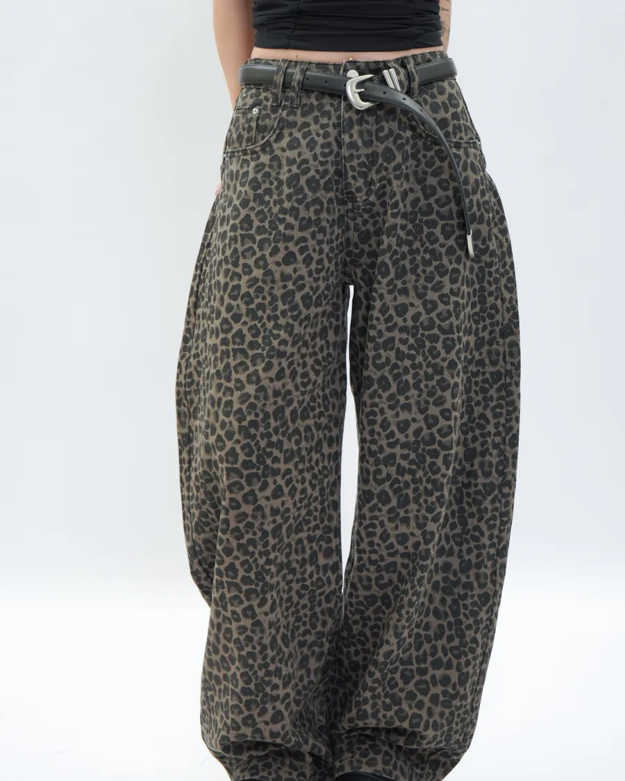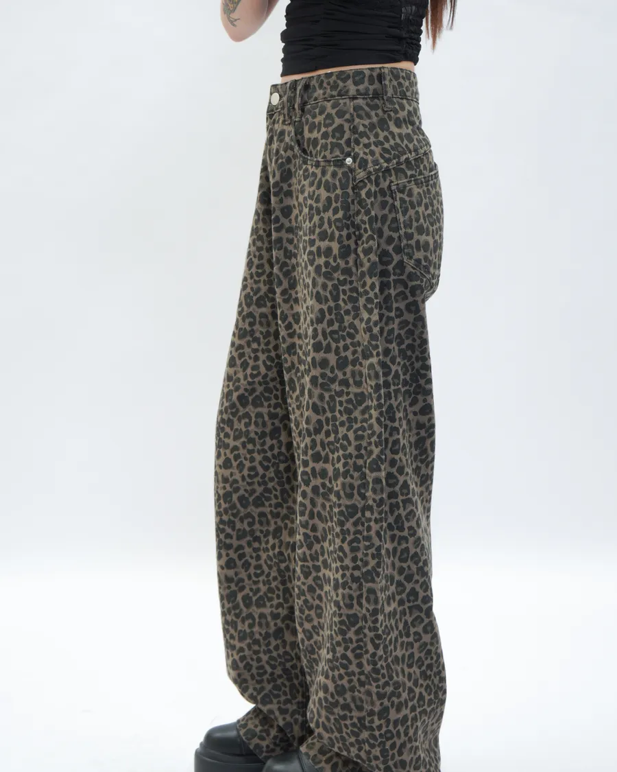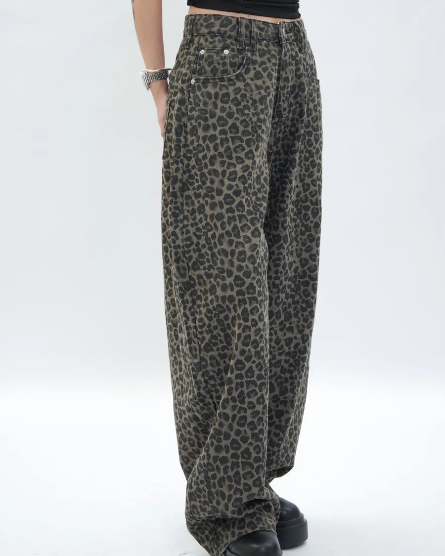 復古感豹紋落地寬褲