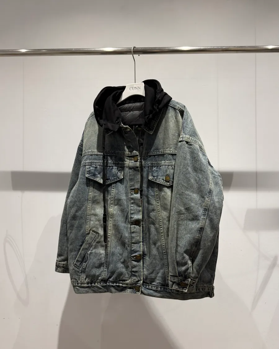 白鴨絨連帽Oversize牛仔外套