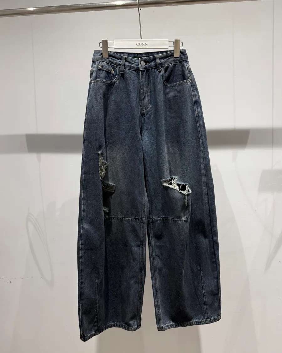 刷破帥帥闊腿落地牛仔褲