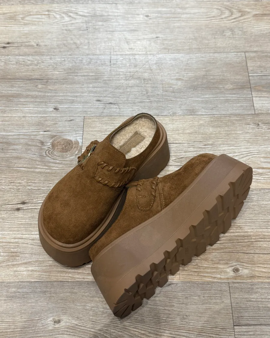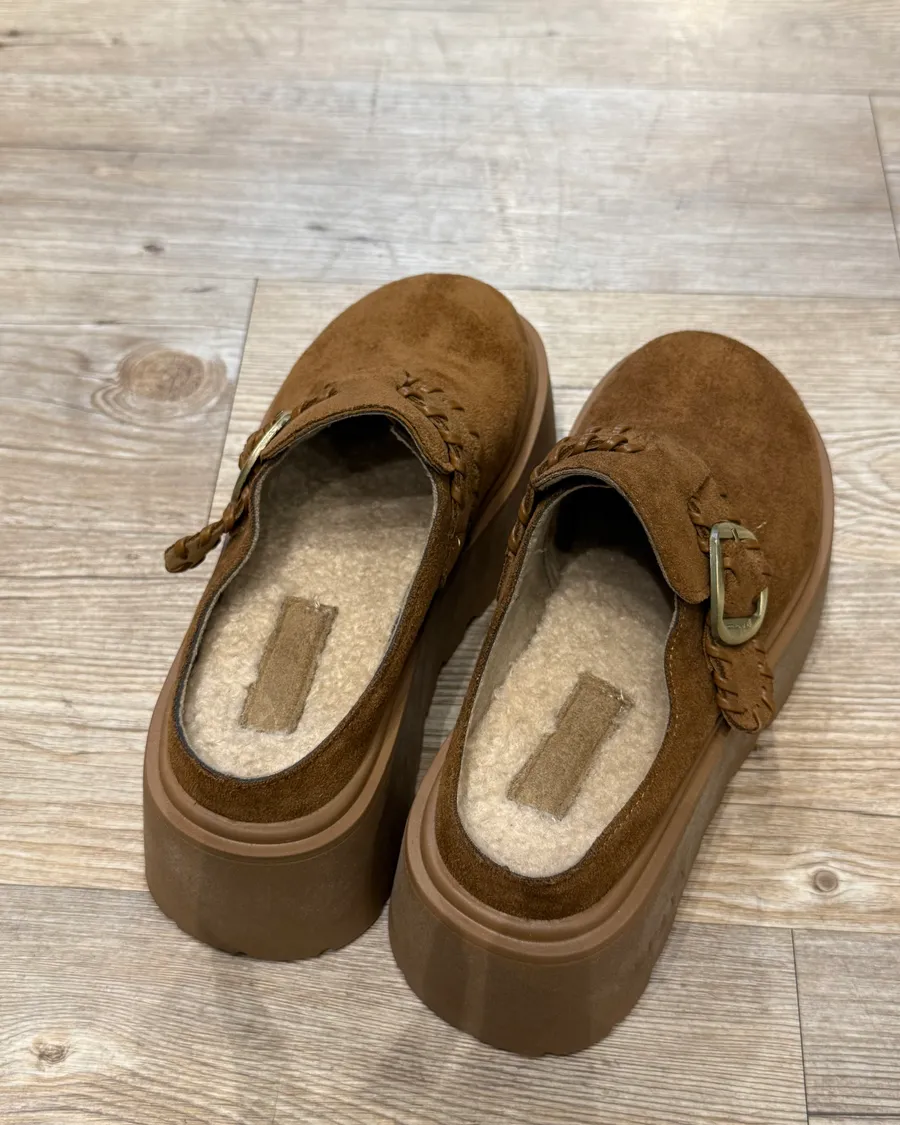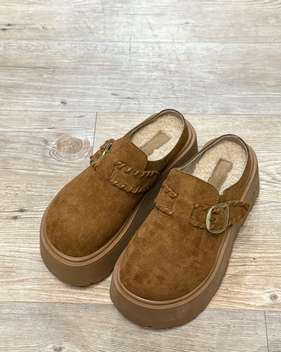 勃肯QQ絨厚底半拖(駝色)