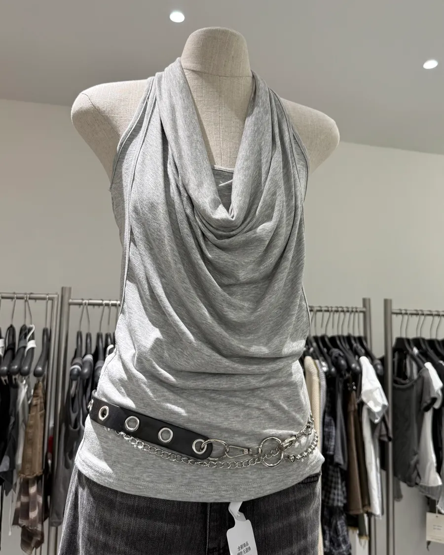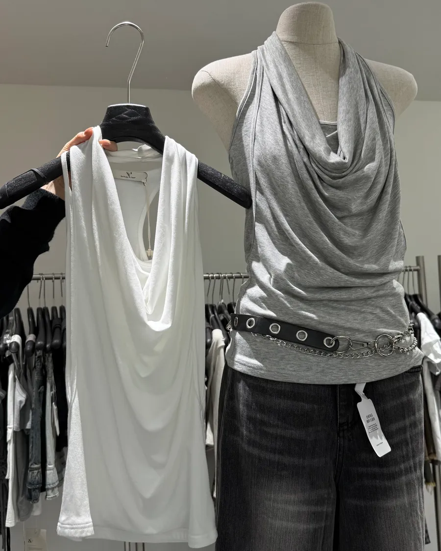 必買!垂領設計感假兩件背心