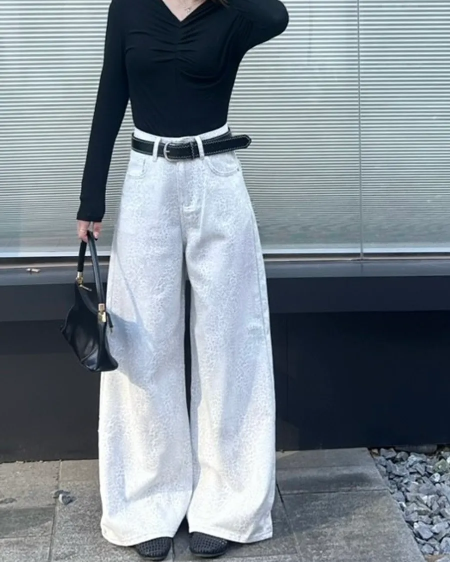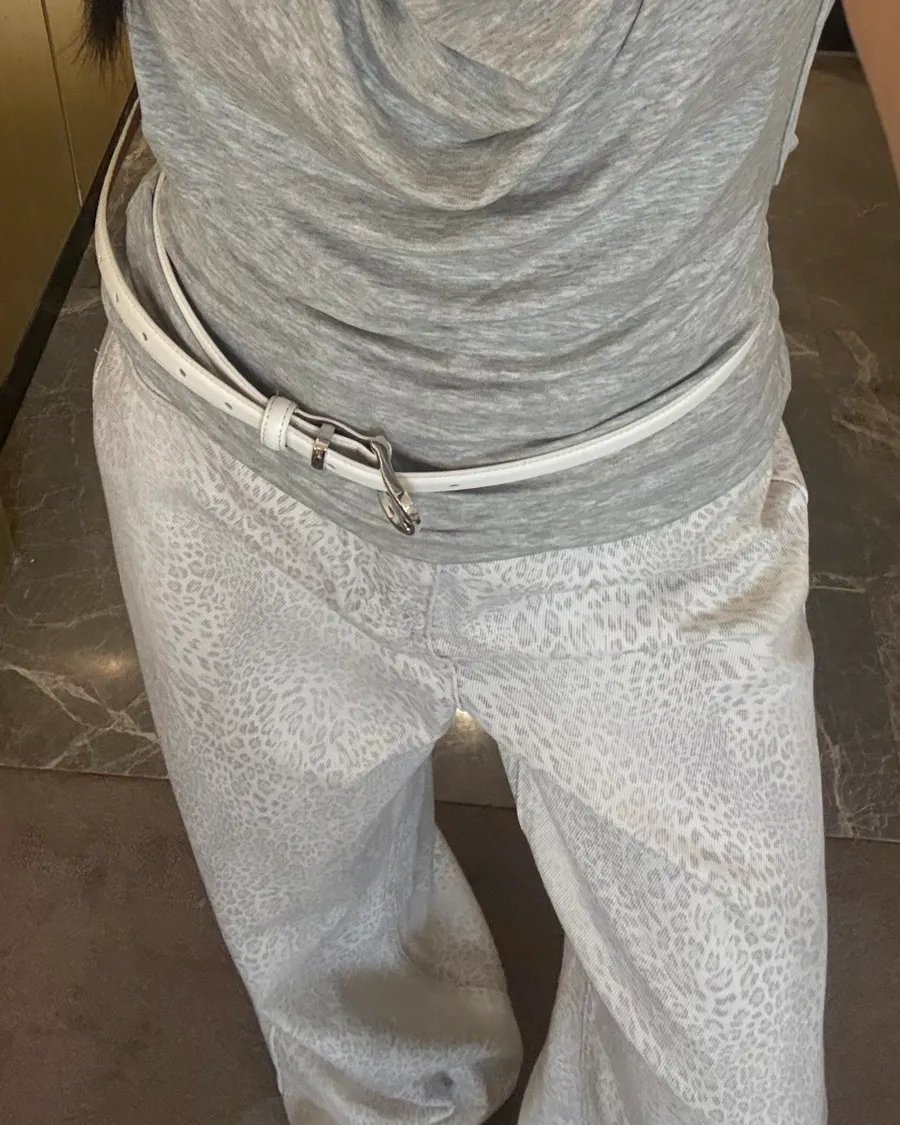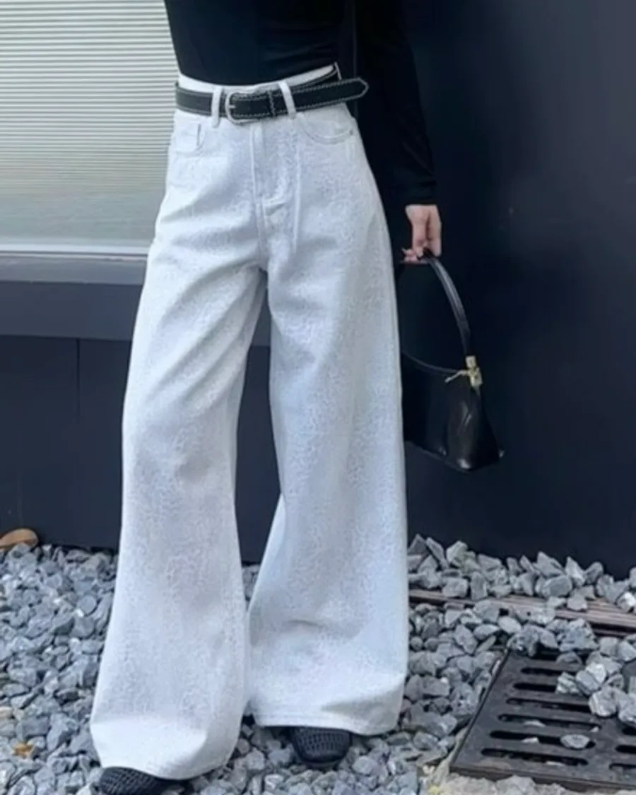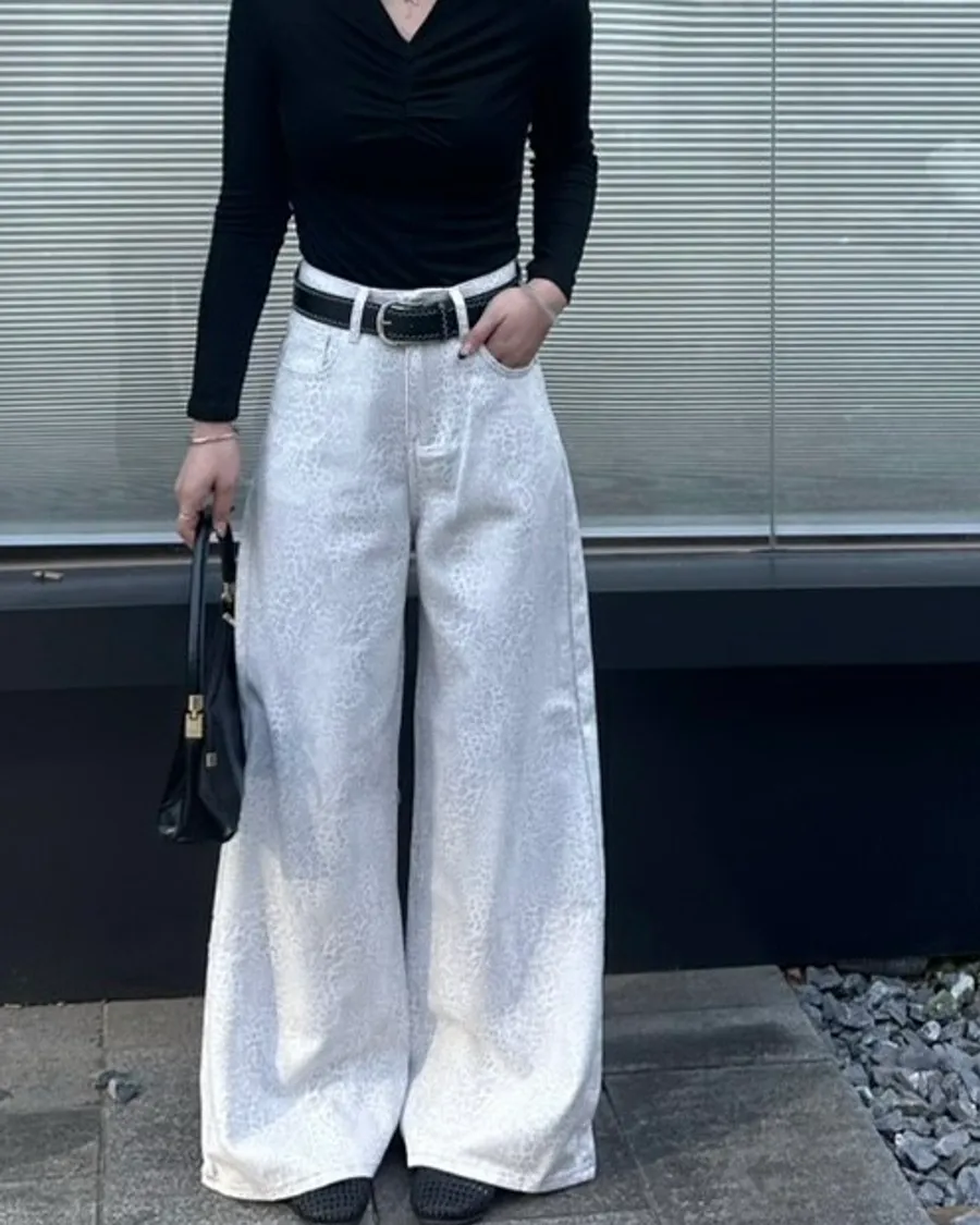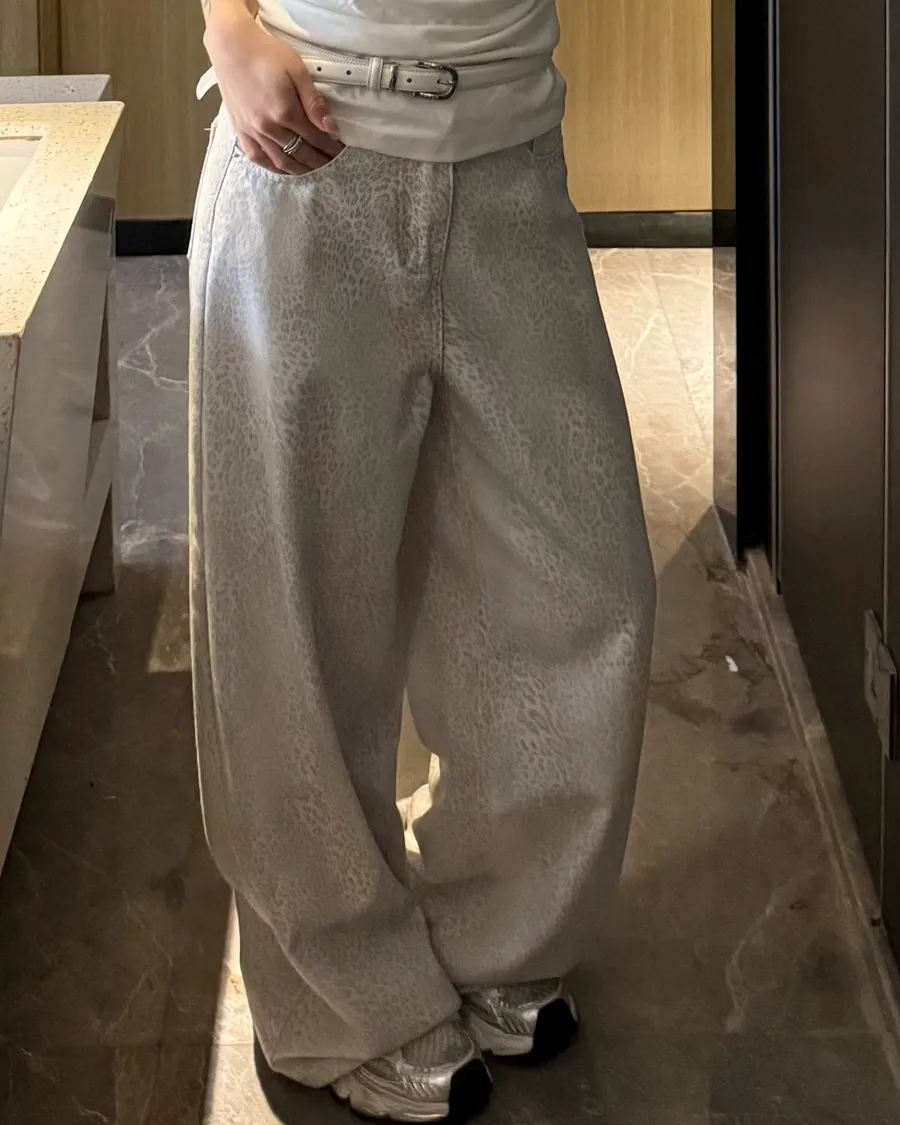低調不失質感牛仔白豹紋褲