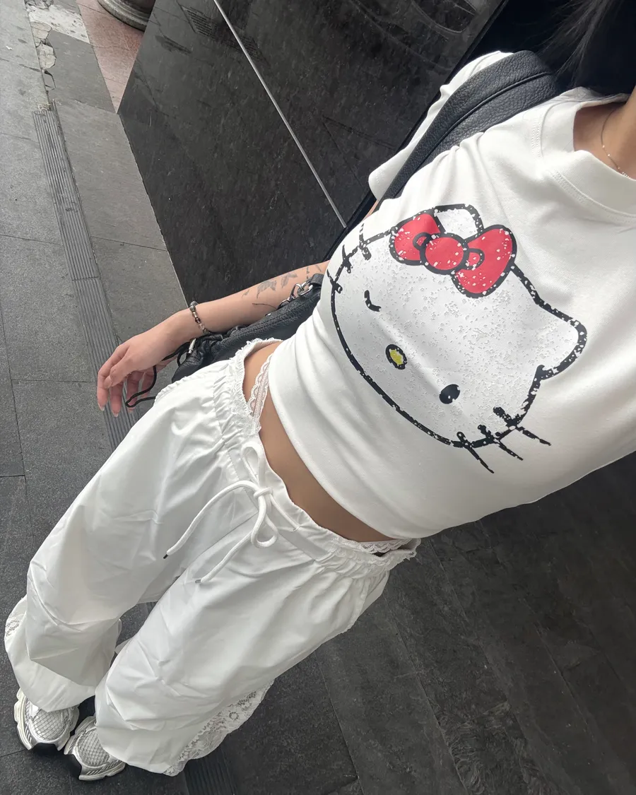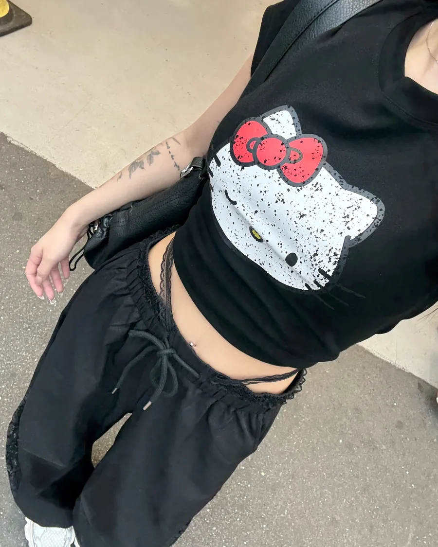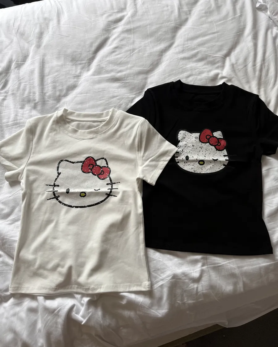 大頭扎眼凱蒂貓印花棉t